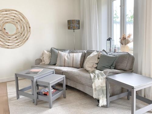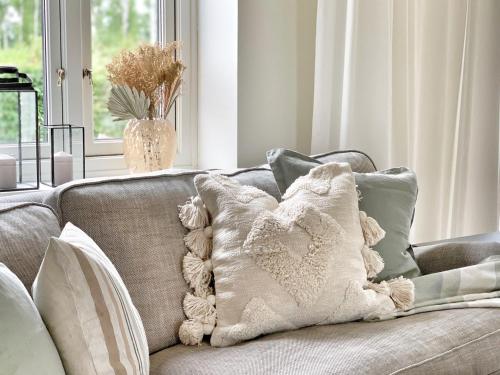 Located in Torekov, Boende med pool och tennisbana i familjevänligt område provides accommodation with private pool, free WiFi and free private parking for guests who drive. With inner courtyard views, this accommodation offers a patio. The holiday home has a sauna and private check-in and check-out. The holiday home with a terrace and garden views features 2 bedrooms, a living room, a flat-screen TV, an equipped kitchen with a dishwasher and an oven, and 2 bathrooms with a shower. Guests can take in the ambience of the surroundings from an outdoor dining area or keep themselves warm by the fireplace on colder days. For added privacy, the accommodation features a private entrance. You can play tennis at the holiday home, and the area is popular for hiking. If you would like to discover the area, skiing, cycling and fishing are possible in the surroundings and Boende med pool och tennisbana i familjevänligt område can arrange a bicycle rental service. The nearest airport is Ängelholm-Helsingborg Airport, 22 km from the accommodation.