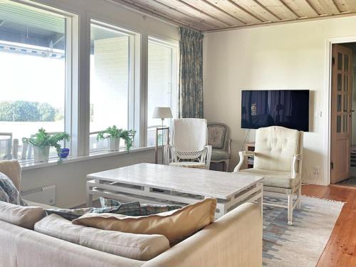 Located in Båstad in the Skåne region, Country house with sea view near Hovs Hallar has a garden. This property offers access to a patio, free private parking and free WiFi. The spacious holiday home with a terrace and sea views features 4 bedrooms, a living room, a flat-screen TV, an equipped kitchen with a dishwasher and an oven, and 1 bathroom with a shower. Guests can take in the ambience of the surroundings from an outdoor dining area or keep themselves warm by the fireplace on colder days. For added privacy, the accommodation features a private entrance. The nearest airport is Ängelholm-Helsingborg Airport, 19 km from the holiday home.